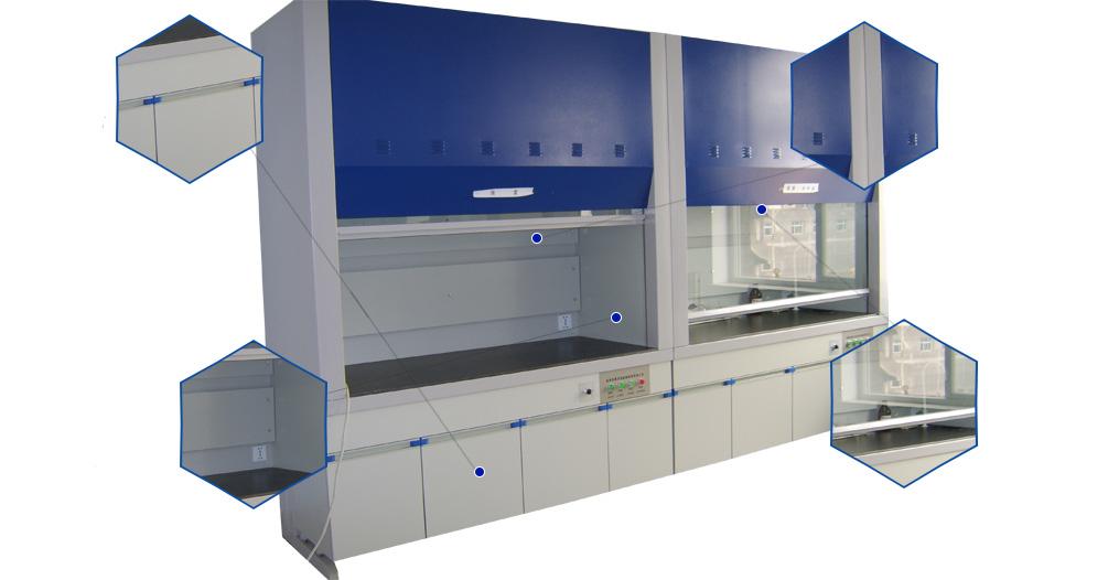 • 上下推拉防爆玻璃門,內(nèi)襯三級導(dǎo)流板,無死角排風(fēng)